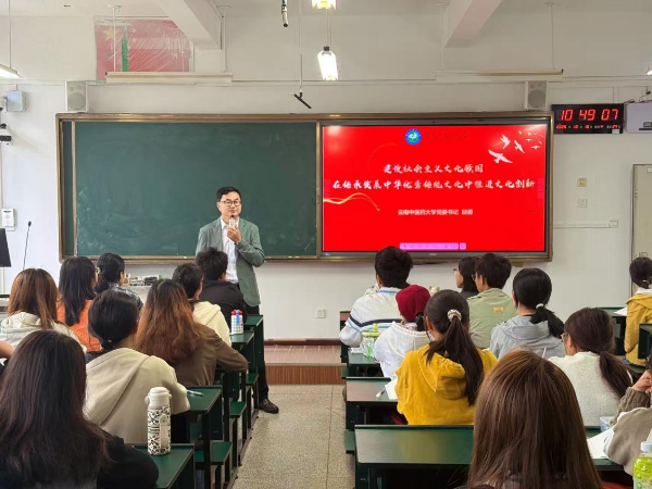 邱勇以“中国式现代化”为切入点,从建设中国特色社会主义文化的必要性、新时代中国特色社会主义文化建设成效、在传承发展中华优秀传统文化中推进文化创新三个方面进行了详尽阐释。邱勇指出,中华文明是世界上唯一绵延不断且以国家形态发展至今的伟大文明,正处在强国建设、民族复兴的历史新方位。实现中华民族从站起来、富起来到强起来的伟大飞跃,必然伴随着中华文化大发展大繁荣,必然召唤着建设社会主义文化强国。传承发展中医药文化,不仅是守护中华文明血脉的责任,也是推进医学科学创新、服务人民健康福祉的需要。